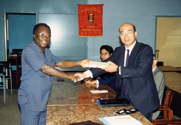 第二の目的地=ガーナの首都アクラ。1981年にクーデターにより軍事政権が樹立されて以来8年、政情は安定してきているとはいえ全体に都市は荒れており、再生産がされていないように見受けられました。また、公用車に韓国の現代Hyundai自動車が使われていたのも印象的でした。