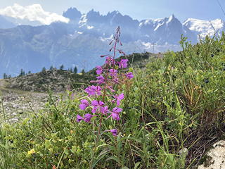 振り返ると遠くブレヴァンやその下にあるプランプラが見通せて、歩いてきた距離を実感することができました。歩こうと思えばさらにラック・ブランまで足を伸ばしてもいいのですが「軽めのハイキング」がコンセプトなので今日はここまで。昨日乗れなかったテレキャビンに今日こそは乗って、楽ちんモードでレ・プラへと下りました。
