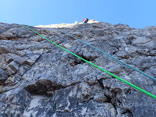 ホールドは比較的しっかりしており、グレードも最高でもIV+なので問題となるところはありません。フォローで登るならこれほど気分の良いルートはなかなかありません。