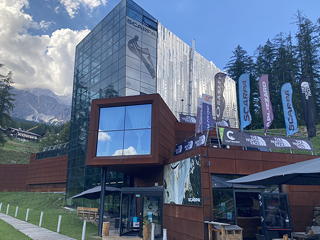 その後、3人のガイドたちはMisurina湖畔のバーで飲み、コルティーナ・ダンペッツォのクライミングジムに併設されたバーでまた飲みといつ果てるともない歓談が続きます。これは付き合いきれんと思った私はジムの中を見学してみましたが、この高さには仰天しました。