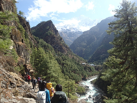 ところどころで休憩をとりながら、隊列はドゥード・コシが作る渓谷の中を上流へと進んでいきます。