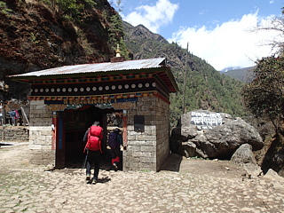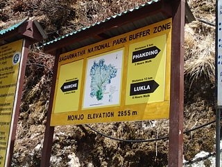 ここは北へ向かうエベレスト街道と東に位置するキャシャール・ヒマールへの道との分岐点モンジョにある、サガルマータ国立公園のエントランス・ゲート。国立公園事務所でネパール・スタッフが手続をしてくれて、いよいよエベレストに通じるクーンブ地方に足を踏み入れました。