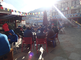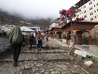 これがかの有名なナムチェバザールの入り口で、先ほどの二俣からは標高差500m強を一気に上がってきた計算になります。
