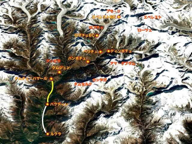 さらにしばらく歩いて再びトイレ休憩をとったときにそこに置かれている地図を見ると、ナムチェバザールはもう目と鼻の先でした。