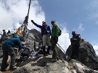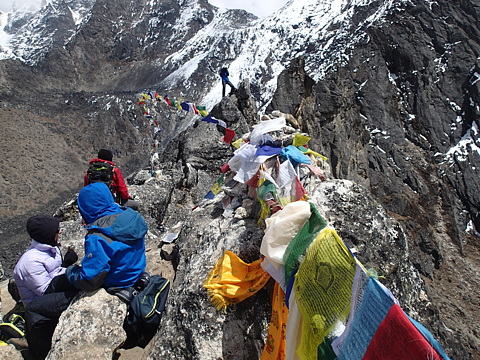 ほとんど息苦しさを感じることもなく登り続け、ケルンから2時間で着いたところは尾根の途中ですが、ポールとタルチョが終了点の印。その標高はおよそ5030mです。