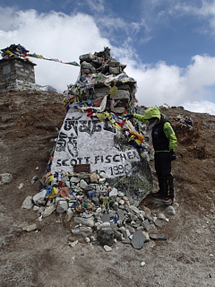 Scott Ficherは、1996年5月のエベレスト大量遭難の際にマウンテン・マッドネス隊を率いて登頂し、ブリザードの中でクライアントの下山をサポートしようとして命を落とした人物です。バラサーブは黙ってその墓石に水をかけていましたが、個人的に親交があったのか、同じ山岳ガイド仲間として敬意を表したのか……バラサーブのしんみりとした姿を見ると、その点を問い掛けることはできませんでした。