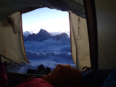 あれがエベレスト、あの光るのがクーンブ氷河。