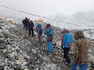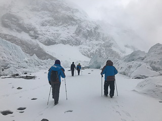 昼食後には例によって雲が低いところまで降りてきましたが、氷河ツアーは希望者を募って催行されました。引率はバラサーブとチェパ、参加者はみのっち、かみちゃん、タムさん、いっしー、ちえさん、それに私です。