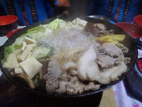 そして夕食は、またまた豪勢な鍋です。すっかり食欲が回復していていくらでも肉を食べられるのがうれしい。