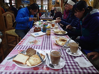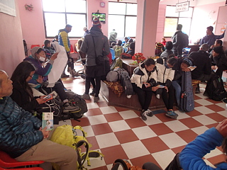 午前6時に起床、もう歩くためのパッキングをしなくてもよい朝というのは格別です。とは言うものの気がかりなのは「カトマンズ行きの飛行機は、今日飛ぶのか?」ということ。空には低く雲が垂れ込めていて我々の不安をかきたてます。