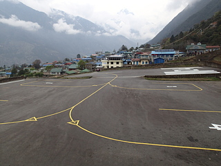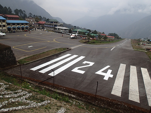 何度見てもこの過激な滑走路には驚きます。しかも今日乗る飛行機は、この急坂を落ちるように下っていって谷底へとダイヴするように離陸するわけです。