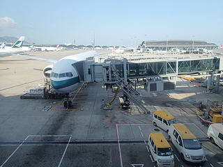 カトマンズを深夜に発った飛行機が香港に降り立ったのは、香港時間の早朝でした。そしてここまで来れば、日本との時差はもう1時間しかありません。3時間弱の乗継ぎ待ちの後、この旅での最後の飛行機に乗ったところでいち早く、腕時計の時刻表示を日本時間に合わせました。