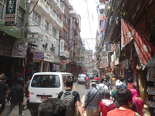 こちらはボダナートのすぐ近くの道路の様子。地図を見たところ、カトマンズ市街をぐるっと囲むリングロードの外側(東北)に位置するので多少は静かなのかと思っていたらまったくそんなことはありませんでした。