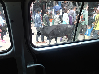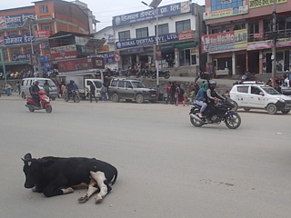 市街地のど真ん中で見掛けた牛もすごい。広い車道で堂々と寝そべっていたり、人に混じって普通に歩道を歩いていたりしますし、誰もそのことを気にかける様子がありません。ネパールはブッダ生誕の地ルンビニを擁する国であり、上述のようにトレッキングの間はチベット仏教の存在感を強く感じたのですが、実は人口の8割はヒンドゥー教徒で、ネパール王室は長らくヒンドゥー教を国教としてきた歴史があります。そのためにこうした光景が生じたのではないかと思いますが、幸いにしてこの牛たちを目にしたのは旅の最終盤。それまでの間にさんざんヤクやゾッキョの姿に触れていたためか、こうした光景に対して若干の免疫ができていたようです。