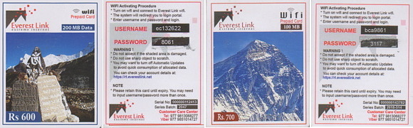 いつもの旅ならMacBook Airを持参しますが、今回はシンプルにカメラとiPhoneだけを持ちました。トレッキングの途中も、BCはともかくナムチェバザールやディンボチェのようなちゃんとした宿泊施設なら有料で充電が可能ということでしたが、念のためiPhone用に大容量のモバイルバッテリー、カメラ用には替バッテリーを二つ、それぞれ持っていったので、電源不安を感じることは一切ありませんでした。ところで、iPhoneを通信手段として使うためにはカトマンズでSIMを購入するかロッジのWi-Fiを使用することになります。今やたいていの宿には有料のWi-Fiサービスがあるということでしたので私はもっぱらWi-Fiに頼ることに最初から決めていたのですが、ナムチェバザールなら500ルピーで使い放題、そこから上部のトレッキングルート上のロッジでは600ルピーでデータ量200MB、エベレストBCでは700ルピーで100MBでした。