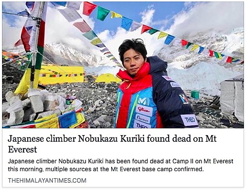 ところがこうしたエベレスト隊の活躍の影で、よもやと思われる事態が起こっていました。それは、あの栗城史多氏の事故死です。