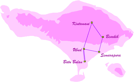 メインイベントが終わって今日はバリ島東部周遊の日。ガイドブックに書いてある面白そうなポイントを、ウブド起点で行ける範囲内でなるべくどん欲に見て回ろうというわけです。8時45分にホテルのロビーでグン氏と落ち合って、車で出発しました。
