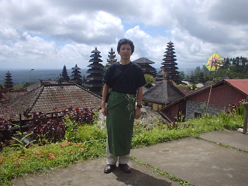 ところで、ブサキ寺院に入るときはバリ島の正装であるサルン(腰布)をまとわなければなりません。ユーコさんは以前にもブサキ寺院に来たことがあるので、あらかじめ日本から大きな風呂敷を持ってきており、それを私にも貸してくれたのでサルンを買わなくてすみました。ミャンマーでロンジーを買っておけば、それでもよかったのかもしれません。