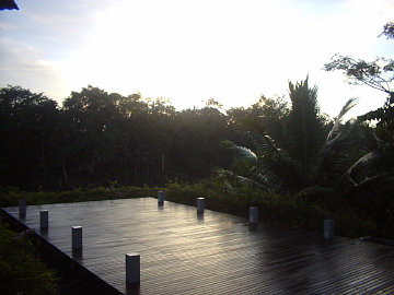 元日の朝、一人ヴィラを抜け出して初日の出を拝みにホテル内を歩き回ってみました。あいにく雲がかかって樹林帯の向こうがぼんやり明るくなるだけの日の出でしたが、テラスの上で手を合わせてこの1年の平和と幸福を祈りました。