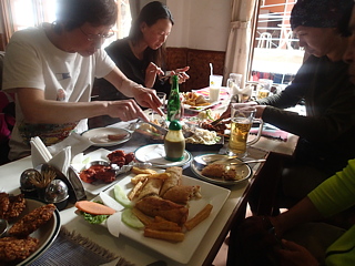 昨日のうちにカトマンズに着いていたヘリコプター3人組はそれぞれ自由行動に出ているとのことなので、ノンヘリ組だけで昼食に出ました。お店はかみちゃん御用達(?)のKathmandu Kitchen。何もかもおいしく、値段もリーズナブルでした。