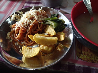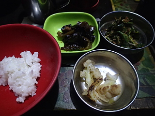 昼食は宿の標準メニューではなく、AG隊に帯同しているキッチンスタッフが調理したものが出ました。ご覧のとおりのメニューですが、この日からEBCを離れる4月26日の朝まで、ほぼ毎食がこのキッチンスタッフによるオリジナル料理となります。