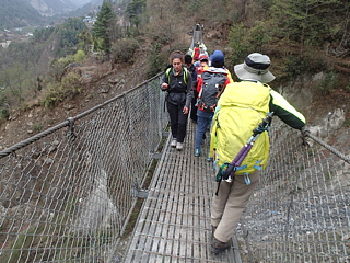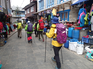 正午になったら、いよいよトレッキングの開始です。この日はルクラとナムチェバザールの中間にある川沿いの村パクディンまで、250mほど高度を下げていく行程です。