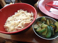 うれしいことに、ここではシャワーを使うことができました。少々お湯が細いものの、十分な温度のお湯で頭を洗い気分良し。ただし標高が3400mを越えているここでは、シャワーを浴びたら手早く衣服を身に着けないと風邪をひいてしまいます。また、この宿ではWi-Fiが500ルピーで無制限に使えますが、夕方から天気が悪くなったために(?)インターネットにつながらない、と宿の主人にすまなそうに言われました。そして、夕食はまさかのカツ丼、たくさんの小鉢に豊富な野菜、デザートにはリンゴがつきました。