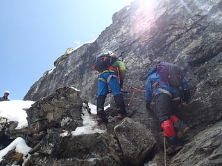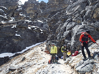 わずかに上がると安定したバンドがあり、すぐに折り返して岩壁の上に乗り上がることができました。