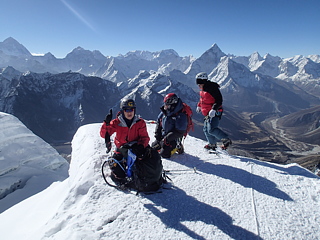 と書かれており、もしこの推定が正しければ今回の山行では微妙に6000mに届いていないことになりますが、だからと言って自分にとってのこの登攀の価値が下がるものとも思っていません。今まで経験した中で最も薄い空気、エベレストを筆頭として周囲に広がる圧倒的な展望、そして、仲間たちと励ましあっての登山を満喫することができたのですから。