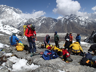 出発から約2時間半で、ヒロくん、私、泡爺の順に、ゴールとなるロブチェ・イースト上の平坦地に到着しました。プラチリ、先導ありがとう!