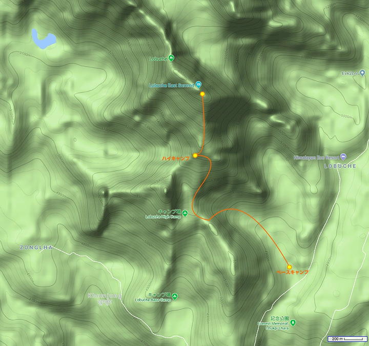 しかし実際のところ、私たちはどこまで登ったのでしょうか。AG社のサイトには「ロブチェ・イースト 6119m」とあるものの、上述のとおりそのてっぺんまでは達していません。そこでGoogleマップをチェックしてみました。