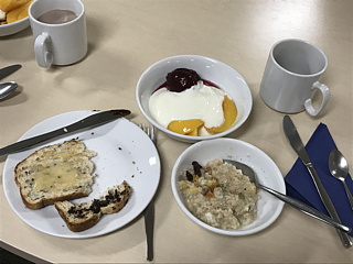 朝食は昨日と同じくオートミールにヨーグルト、そして今日はオーストラリアの発酵食品であるベジマイトをトーストに塗ってみました。塩辛く独特の風味があるベジマイトは、日本人にはそれほど抵抗なく摂れる食品だと思いましたが、それでも口直し(?)にベーコンとスクランブルエッグを追加でいただくことにしました。