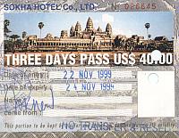 ちなみにアンコール地方にある遺跡群への入場パスは、シエム・リアプの市街からアンコール・ワットへ向かう途中のコントロール・ゲートで買い求めます。1日なら20ドル、2、3日なら40ドルでパスをもらい、遺跡の入口の係員に提示する仕組みで、これはこの地域の全施設フリーパスであり、もちろん同じ遺跡にも何度でも入れます。
