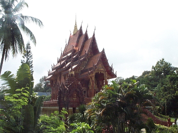 これでだいたい予定された日程は終わりですが、まだ時間に余裕があるのでトンはシリンドーン・ダムに案内してくれました。1971年に完成し、第2王女シリンドーンの名を冠したこのダムが作る透明度の高い水をたたえたダム湖のほとりには王妃のレストハウスやきれいに整備された公園があり、静かなひとときを過ごすにはうってつけ。ただし、お化けのように大きく育ったスパティフィラムやポトスは、さすが熱帯の様相でした。さらに、ウボンに戻る道の途中でワット・プーカオ・ケーオに立ち寄りましたが、ここではお堂の内側のきれいな茶色のセラミックにクメール式の彫刻が施され、天井近くの壁面にはタイ各地の著名なパゴダが浮き彫りにされていました。
