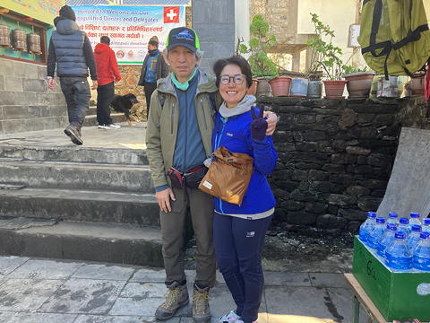 ルクラのゲートをくぐったところで待ってくれていたのは、山友アユミさんです。彼女は私より半月早くネパールに渡り、友人と共に10月27日にチョラツェ(6440m)に登頂した後、天候の推移を見ながら徐々に下界へと降りてきて昨日ルクラにやってきたところでした。おめでとう、アユミさん!日本に帰ったら祝杯を上げましょう。