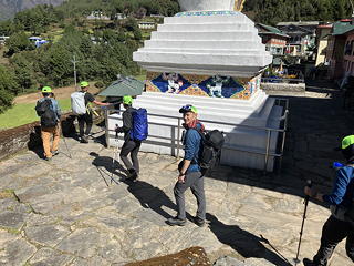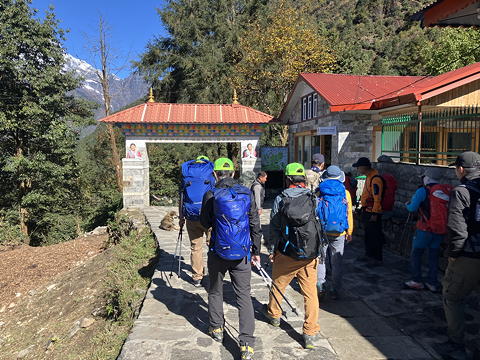 我々はいったんおなじみのEverest Plazaに入り、ここでやはり半月ほど早くネパール入りして10月末の連日の雨を体験していたというT氏を仲間に加えました。彼もA氏・F氏と共にアイランド・ピーク登頂を目指しているので、この時点で主要メンバーはチェパ、アイランド・ピーク3人組(以下「島トリオ」)、ロブチェ・イーストを目指すOさん、私の6人となり、さらにチェパの親戚でサブガイドを勤めるペンバとポーターたちが先行するという構成になりました。