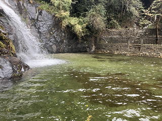 天空から落ちてくる滝や清冽な水を湛える沐浴場といった見慣れた光景も、昨年に比べて1ヶ月近く時期が遅いためにどことなく寒々しい感じがします。もっともこれはこのときだけの話で、やがて奥地を歩くようになると、夜間の寒さとは打って変わった日中の暑さに悩まされることになるのですが。