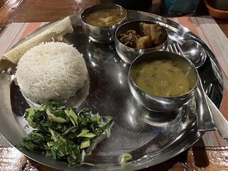 夕食は例によってダルバートですが、さすがディンボチェ、まだまだ付け合わせは充実しています。そして寝る前に湯たんぽ代わりのナルゲンボトルにタトパニ(湯)を入れてもらい(400ルピー)、この夜からロッジ備付けの布団だけではなくGH社から貸与された分厚いシュラフを使って寝るようにしました。