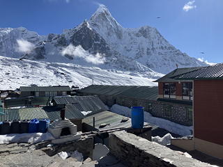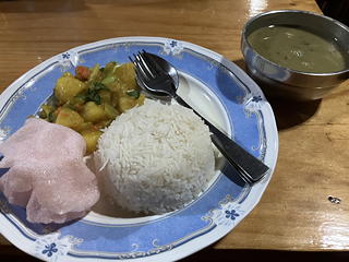 ロッジに戻っての遅いランチは軽くチキンスープ、そしてゆっくり身体を休めた後のディナーはダルバートですが、うーん、このダルバートの寂しさは、イムジャ・コーラ流域の最奥のロッジにいることをひしひしと感じさせます。