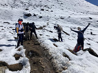 ゾンラへの道に戻って少し進んだところで日本人グループと一緒になりましたが、これがまたしてもハイジさん一行でした。ずいぶんとご縁が深いなぁと驚くやら喜ぶやらですが、この後ゾンラとダグナでは違うロッジになったものの、ゴーキョでは同じロッジで再会することになります。