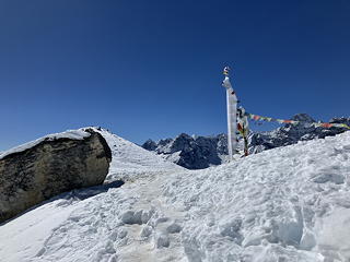 雪の上に切られたステップをありがたく使わせてもらって、チョ・ラに到着。ゾンラからここまで約3時間を要しましたが、これは長い足でぐいぐい歩く西洋人トレッカーたちと比べるとずいぶん遅い方だったと思います。