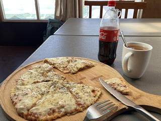 午後のゴーキョ・リ登山に向けて、勝負ランチはカラ・パタールのときと同じくピザとコーラ。これで自信をつけてしばらく休息してから、ゴーキョ・リに向かいました。