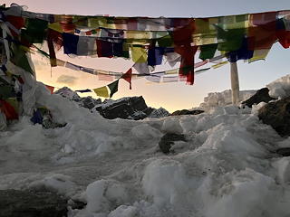 今日は午前中にゴズンパ氷河[1]を渡ってゴーキョに達し、午後は遅めに出発して「三つのピーク」のラストとなるゴーキョ・リ(5357m)で夕景色を眺めるという二つのミッションをこなさなければなりません。何気にがんばりどころです。