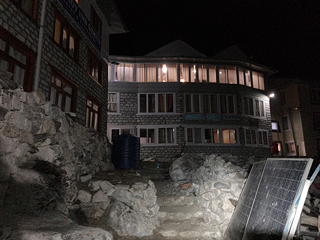 ゴーキョ・リの登山道は上から見ればはっきりしているので、ヘッドランプ頼みの夜行下山でも不安はありません。無事にロッジに帰還して、夕食はやはりダルバート。副菜の酸味のある根菜サラダがとても美味でした。そしてこの夕食の場で、我々と同じくこの日ゴズンパ氷河を越えてきたハイジさん一行とあらためて交流することができました。