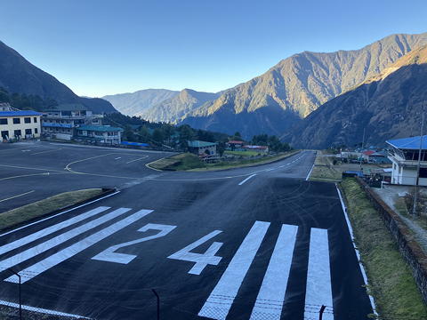 快晴のテンジン・ヒラリー空港。しかし油断してはいけません。目的地とそこまでの空路のすべてが晴れていなければ、飛行機は飛ばないのですから。