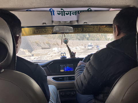 そして、そこからの1時間半ほどはとんでもない悪路の連続でした。本来は舗装路がマンタリからカトマンズまで続いているのですが、随所でこれが崩れており、その都度河川敷のFlood Wayに降りてガタガタとひどく揺られながら崩壊区間をパスすることを繰り返します。いかに豪雨災害のせいとはいえ、これだけあちこちで道が寸断されているというのは、道の付け方が悪いか作り方が悪いか、あるいはその両方が原因に違いありません。こうした苦行の中での唯一の朗報は、出発が遅れていたF氏のヘリコプターが昼前にやっとルクラを飛び立ったというニュースでした。
