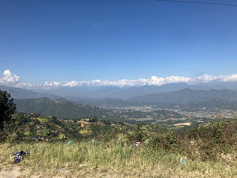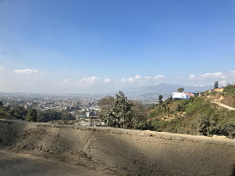 カトマンズ盆地に向かって緩やかな下り道を下るこの景観は、中央高速道を走って笹子トンネルを抜け甲府盆地に入るときの眺めにどことなく似ています。
