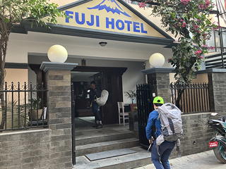 やがてカトマンズ市内に入り、相変わらず車間距離無限小でひしめき合う自動車やバイクの群を巧みな運転でかわし続けた我々の車は、無事にフジホテルの前に到着しました。ドライバーさん、GOOD JOB!そして、このタイミングで私はソナムと共にホテルのロビーで最後のミーティングをもち、旅の反省点を率直に語り合った上でソナムへのチップを手渡しました。ソナム、ありがとう。おかげで生涯に残る思い出を作ることができました。